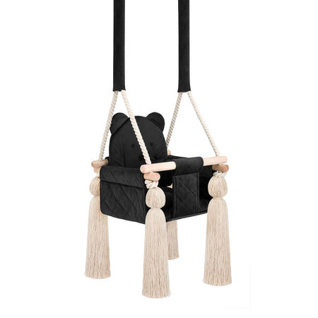 Achat express Balançoire Enfant Intérieur Noir Velours Siège Berçant avec Harnais de Sécurité €84,49 Achat express