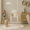 Accueil/Produits/Balançoire Enfant Intérieur Beige Velours Siège Berçant avec Harnais de Sécurité