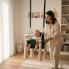 Accueil/Produits/Balançoire Enfant Intérieur Vert Velours Siège Berçant avec Harnais de Sécurité