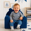 Fauteuil Enfant Ours Velours Bleu Foncé avec Poches Rangement